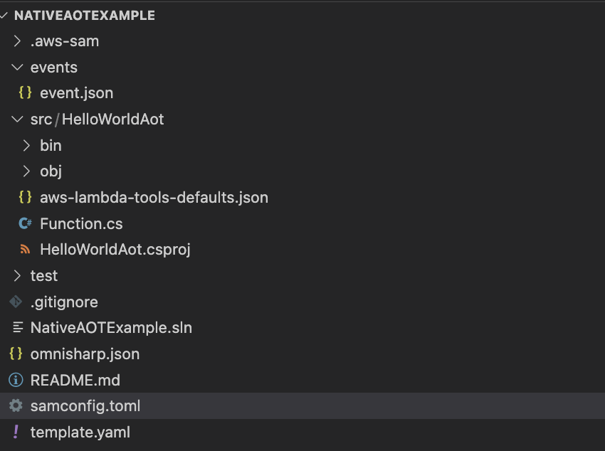 cd ./NativeAOTExample # Navigate to your project directory sam build # Build the Lambda function code