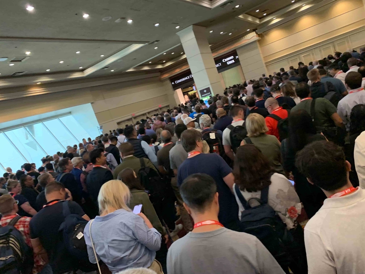 Keynote後は次のセッション会場までの移動に30分。人混みもすごく、特にエスカレーターは危ない場面も。遅めに入場して出口に近い席を狙うのが、退場をスムーズにするコツかもしれません。